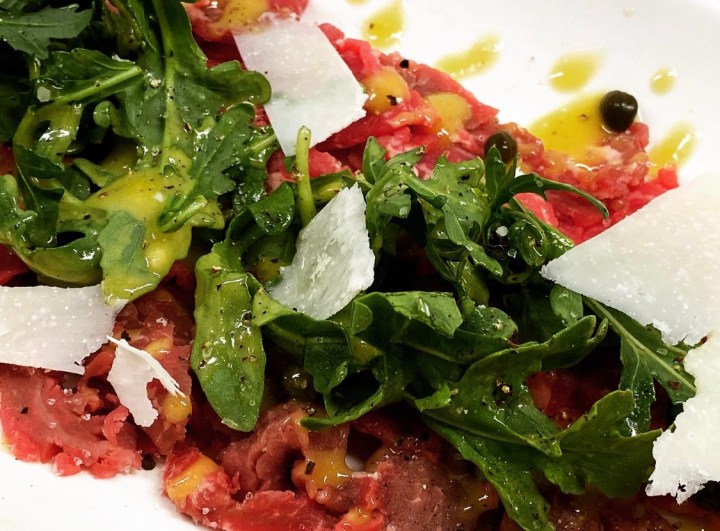 This dish is made with raw beef, dressed in a mustard mayonnaise and topped with baby arugula. Because the beef is served raw it is very important that you get a quality cut of beef. You will want a beef fillet or beef tenderloin. These cuts are both extremely tender and will melt in your mouth.