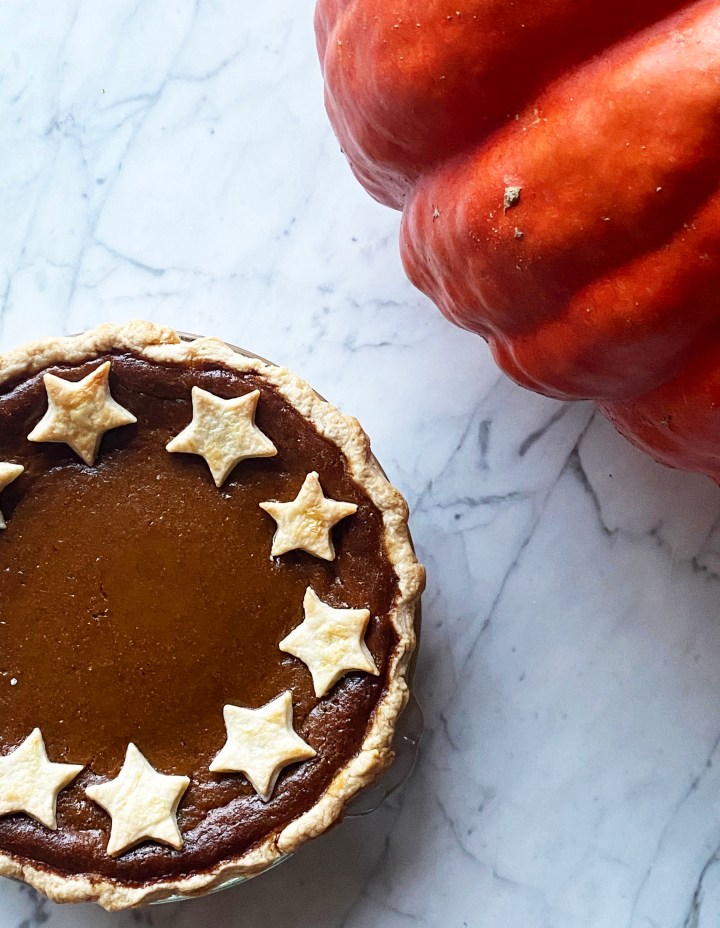 The most delicious pumpkin pie! Homemade pie crust with a light and fluffy pumpkin filling made with brown sugar, vanilla extract and pumpkin pie spices.
